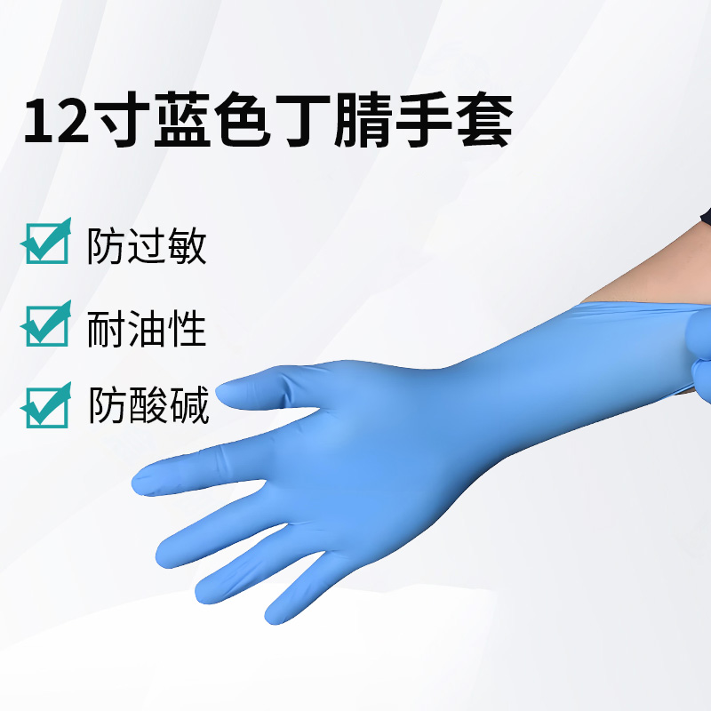 长度≥280MM,主要成分是丁腈橡胶,这是一种由丙烯腈和丁二烯通过乳液聚合制成的合成橡胶。做为防护型手套,其具有耐穿刺、抗过敏、耐化学性及触感灵敏等特点,适用于工业生产、食品加工、宠物养护、医美牙科、实验室等,也是日常生活中不可或缺的防护用品。